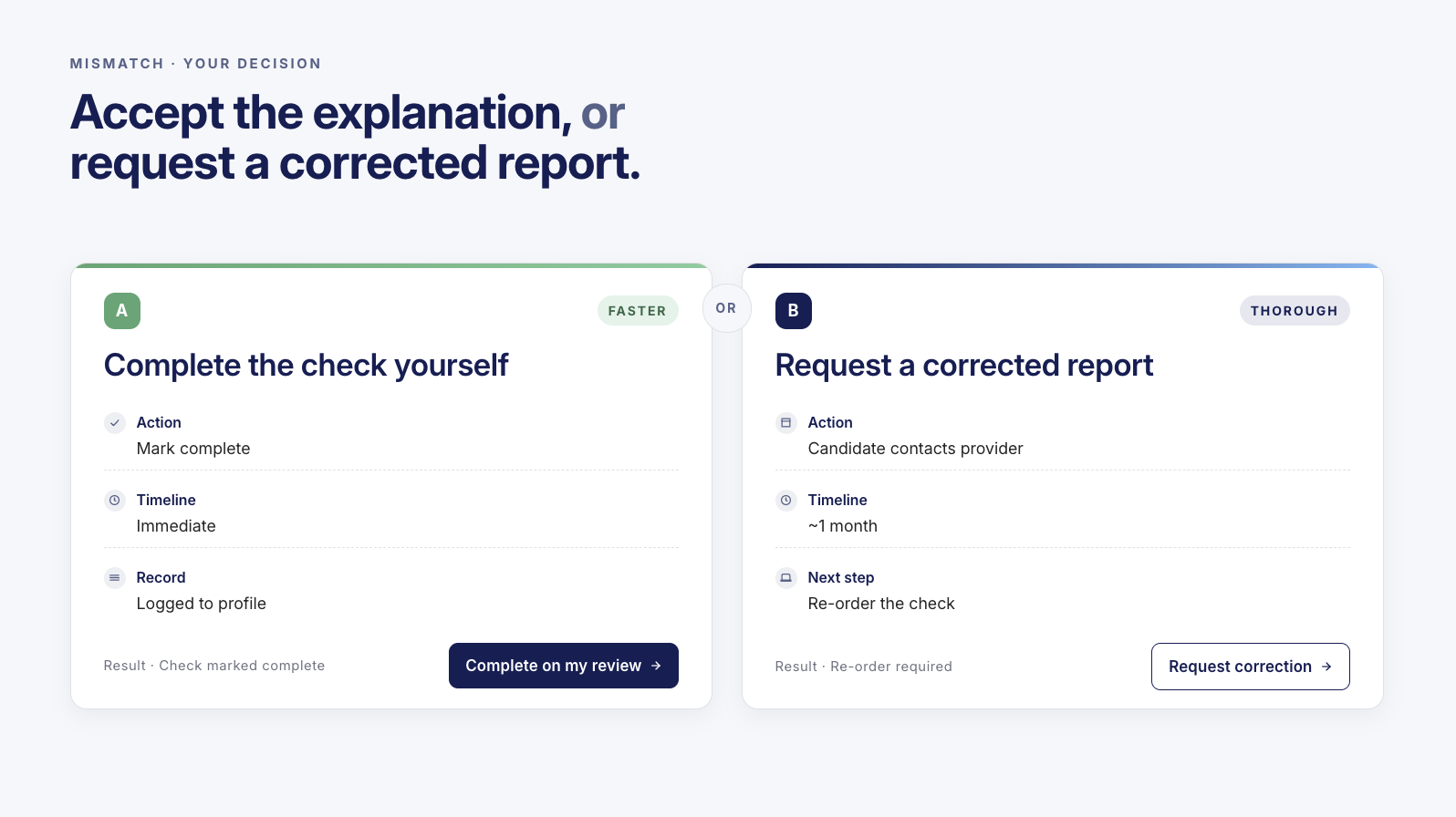 Yes. If the candidate gives you a clear reason for the mismatch and you're satisfied with that explanation, you can complete the check directly in the portal. The check will be marked as complete based on your review, with no further action needed from us.
